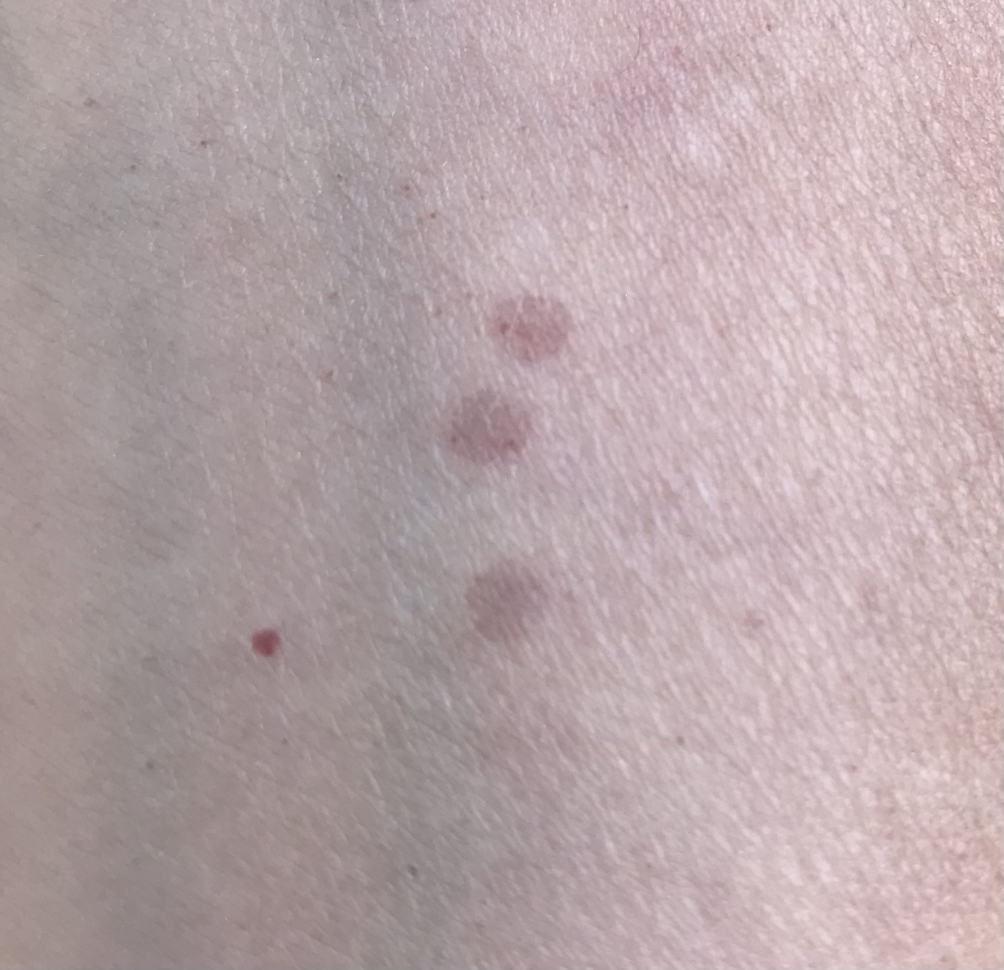 The above two photos show the results of the above 532nm shots after 24 hours. There is some very mild erythema due to some of the capillaries being ruptured by this wavelength.