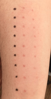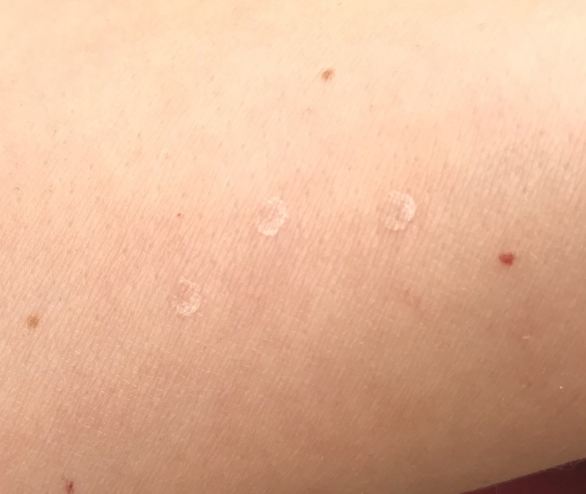 The photo to the right shows a patch of very pale skin subjected to the same 532nm parameters as above – note that this results in a little frosting. This is significantly less than the tanned skin above because there is much less melanin in this patch of skin (on the same arm of the same wife!!)