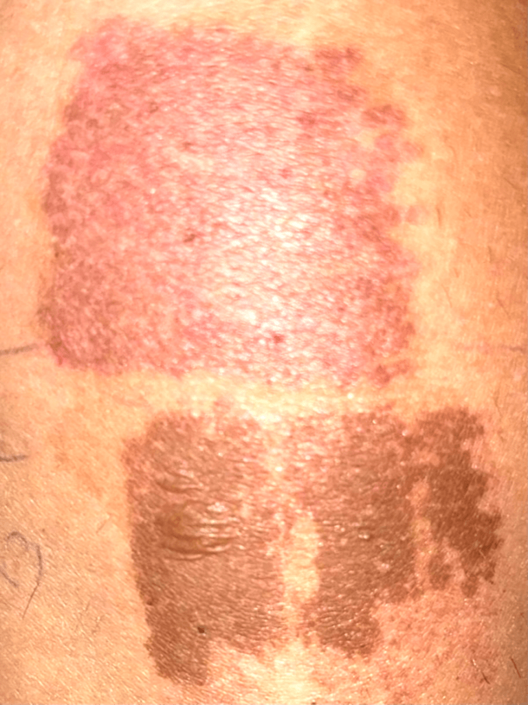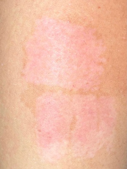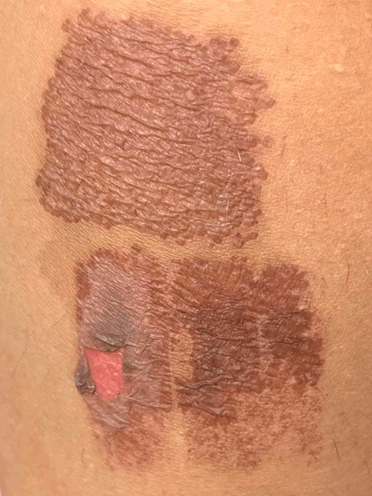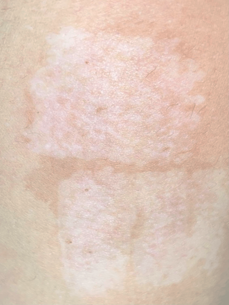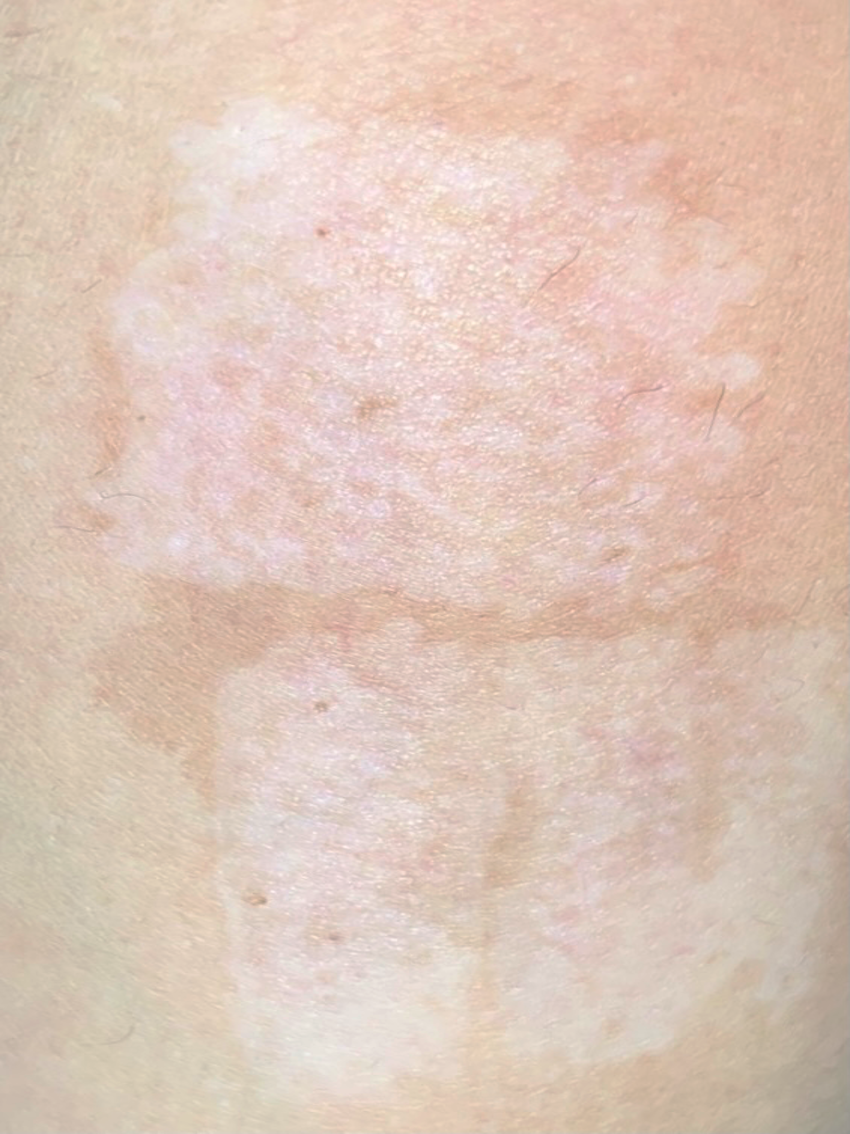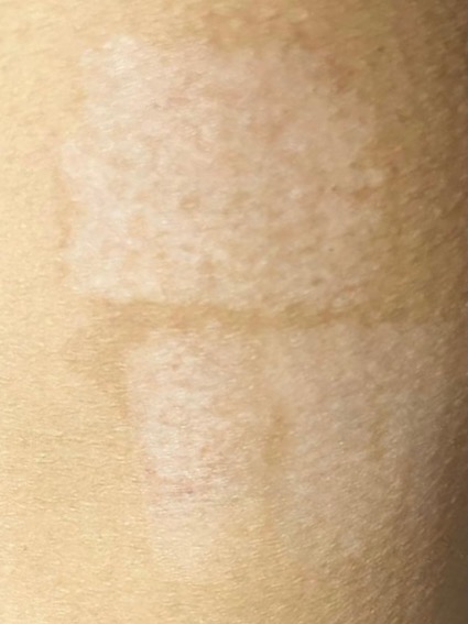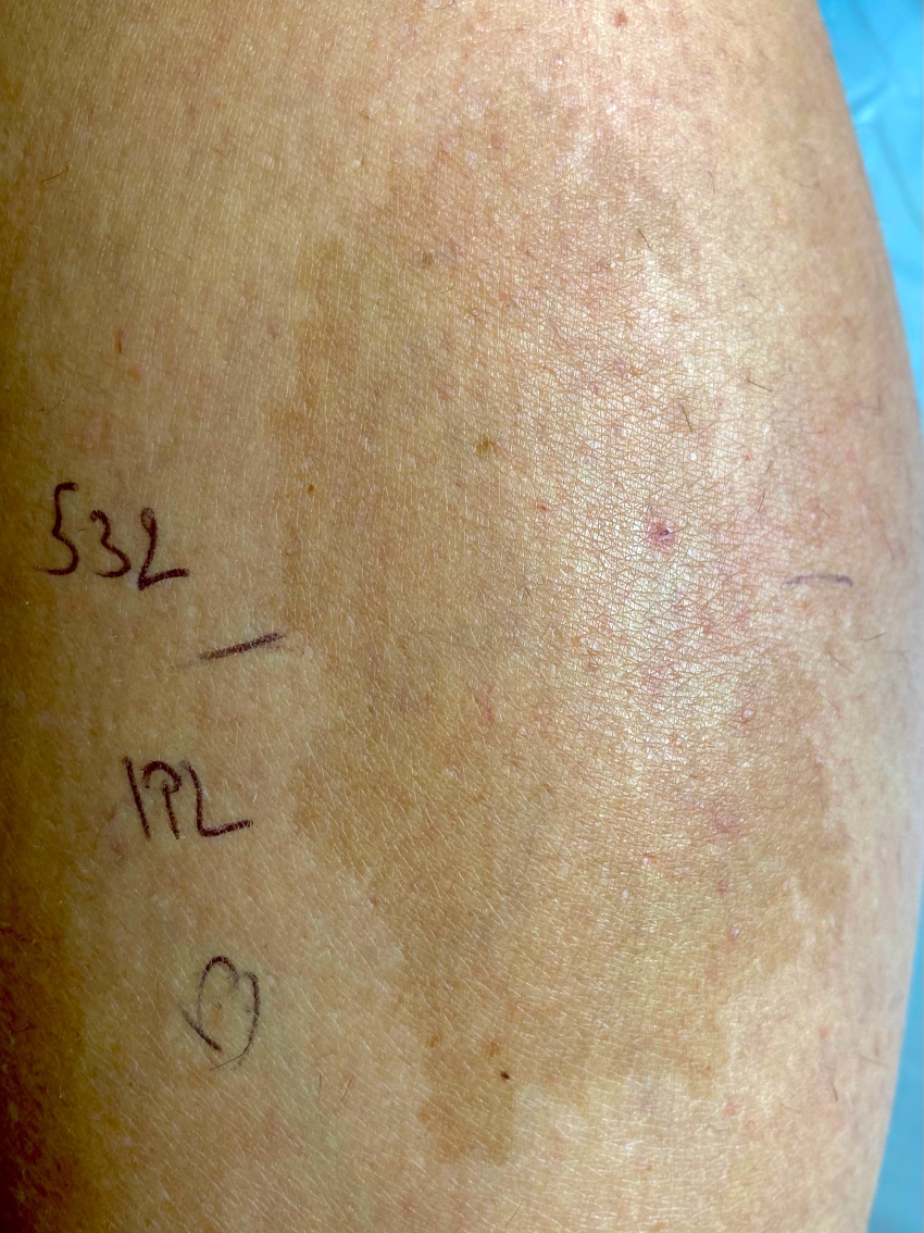 A month after the treatment (27.11.21) and the skin is looking good. The patient had applied fake tan at this point making the appearance much more ‘normal’.