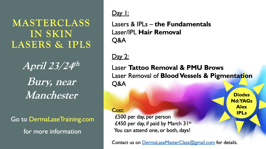 PS Our next MasterClass will be in Bury, Manchester on April 23/24th. Go to dermalasetraining.com for more details.