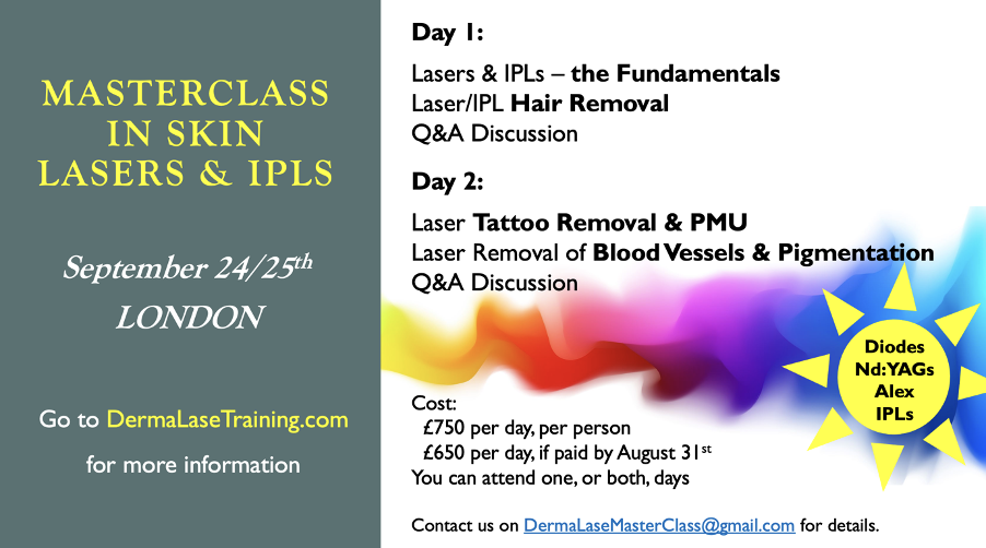 PPS I will be discussing all this and more at our next MasterClass in Luton, London on September 24th and 25th. Contact us on lisa.dermalase@gmail.com for more details.