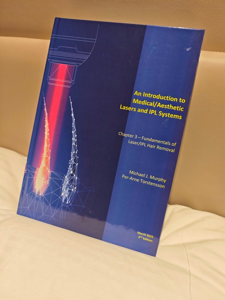It is in hardback and has over 300 glossy pages of technical, clinical and useful information about hair, its growth cycle, lasers and IPLs and how to irreversible destroy follicles using the correct settings – all based on science. We discuss long-pulsed Alexandrite and Nd:YAG lasers, IPLs and diode lasers and how to apply them successfully.